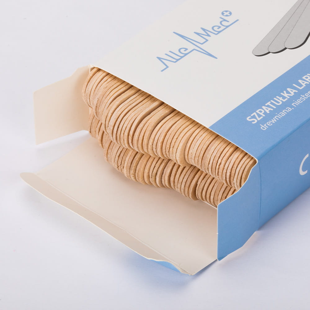 Szpatułki laryngologiczne drewniane jednorazowe do wosku depilacji AlleMed 100 szt