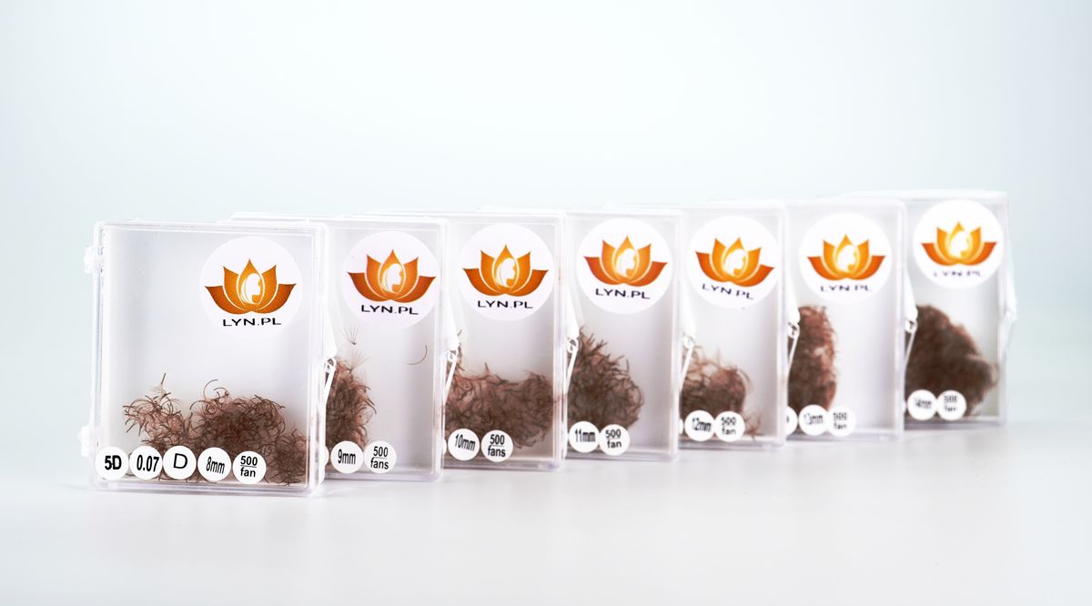 Rzęsy w formie wachlarzyków składających się z 5 pojedynczych rzęs. Idealne do przyśpieszenia zabiegu przedłużania rzęs metodą objętościową.