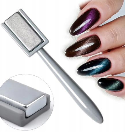 Dzięki niemu stworzysz na paznokciach efekt kociego oka, który zmienia swoje położenie w zależności od kąta padania światła i układu dłoni. Paznokcie pięknie się mienią, zachwycając przy tym oryginalnym wzorem. Nie przejdziesz niezauważona.