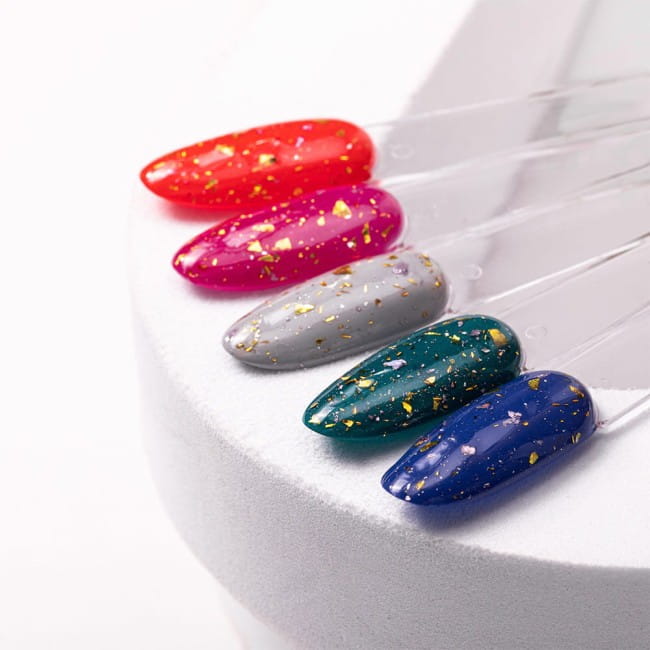 • Gold – łączy w sobie różnej wielkości holograficzne drobinki w odcieniu fuksji i złota