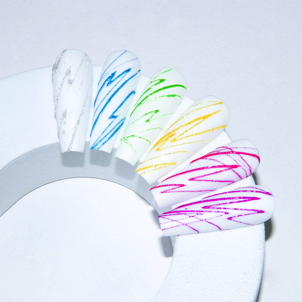 Zaledwie kilkoma ruchami pędzelka lub sondy będziesz cieszyć się modnym, iskrzącym zdobieniem. Dodaj swojej stylizacji niepowtarzalnego charakteru.